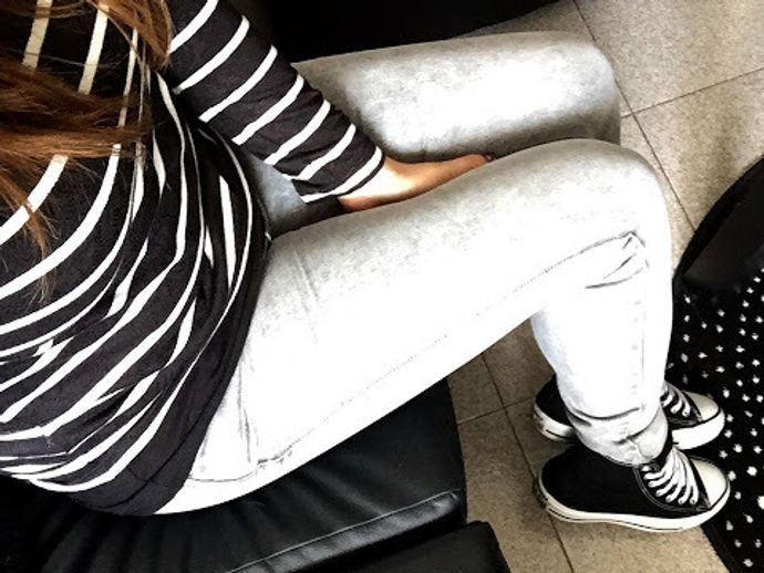 Ciao a tutti! Oggi outfit semplicissimo: maglia a righe bianco e nero con inserto in pizzo sulle spalle di Promod, jeggins grigio chiaro...