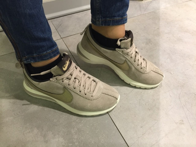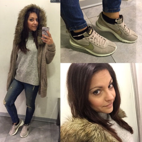 Ai piedi ho indossato il mio ultimo acquisto: un paio di Nike Roshe Cortez in pelle scamosciata beige e logo dorato, comodissime oltre che meravigliose.