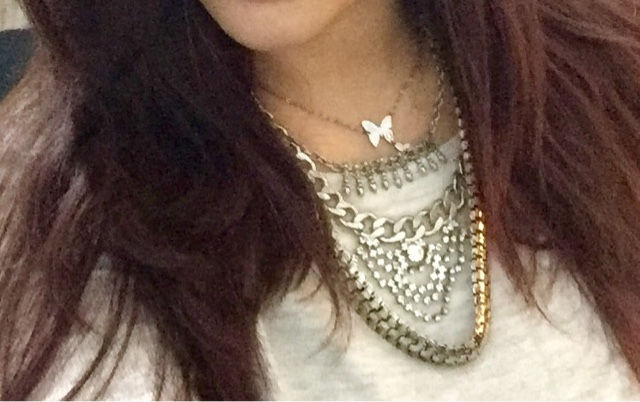 Come noterete mi sono fissata col grigio: maglioncino in lana di Promod a cui ho abbinato dei jeans grigi della stagione 2015 di Alcott, collana multi strato con Swarovski argentata e stivaletti marroni con le fibbie entrambi di H&M.