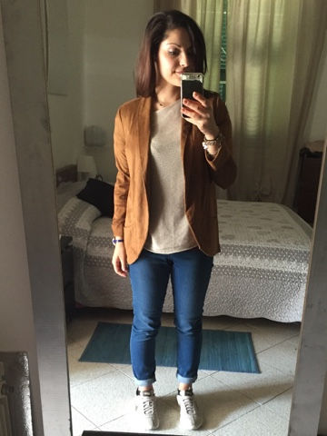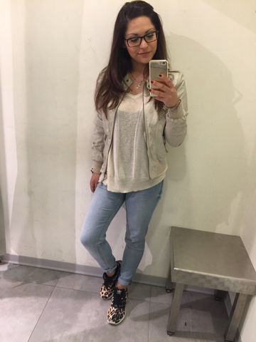 LUNEDÌ: CAPPA ZARA BOMBER BEIGE ZUIKI BORSA NUDE MANGO JEANS H&M SNEAKERS ADIDAS ZX FLUX LEOPARD PER AWLAB