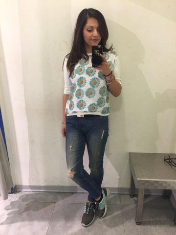 DOMENICA : MAGLIA FLOREIZA JEANS STRADIVARIUS SNEAKERS NIKE ROSHE RUN PARKA JENNYFER